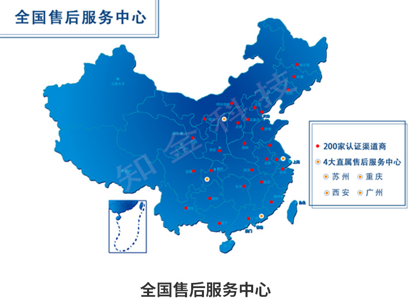知金全線產品提供便捷、快速的售后支持服務,4大直屬售后服務網點,200家認證渠道商竭誠為您服務。